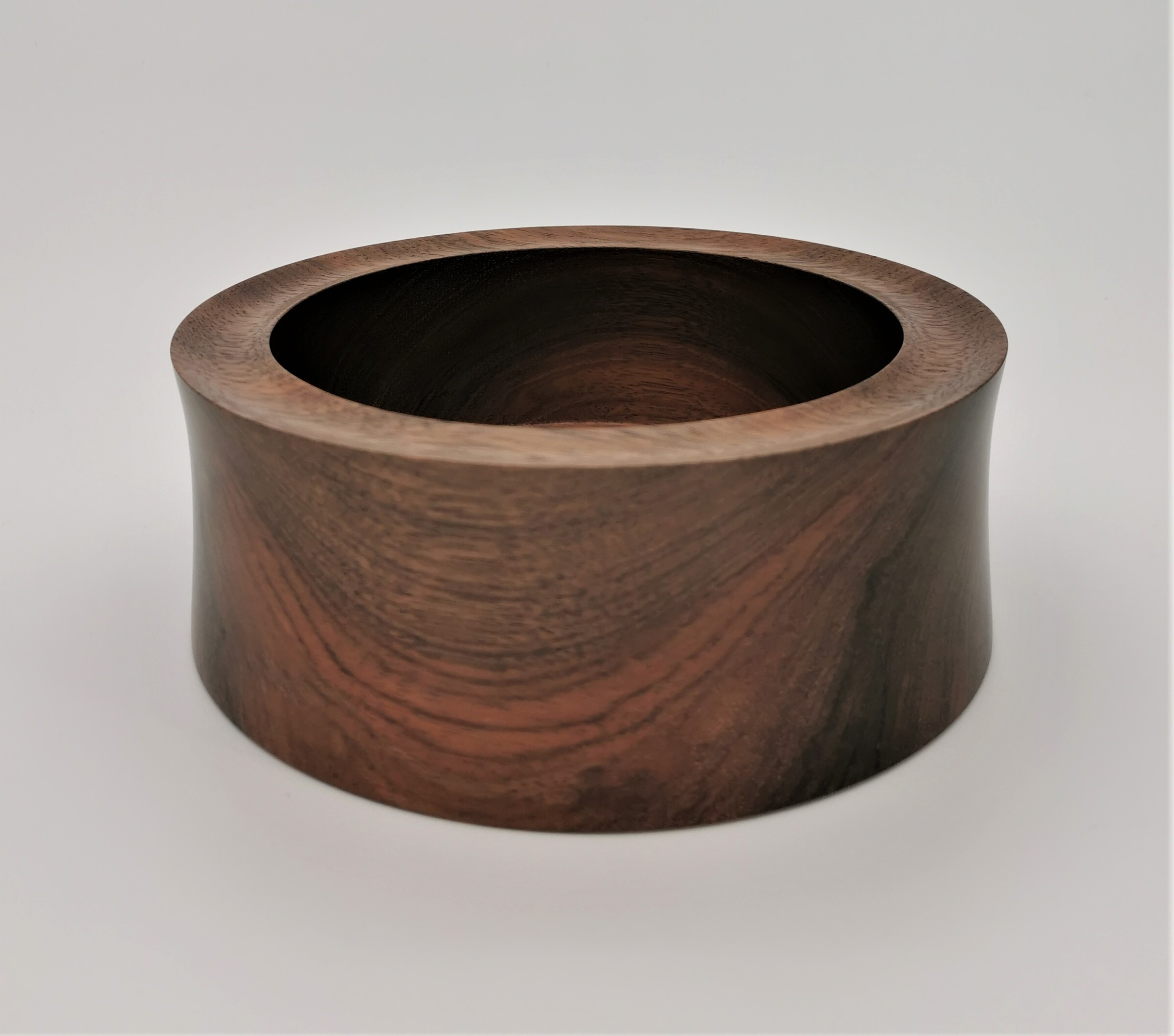 Die Schale aus Laurel besticht durch eine schön geschwungene Innen- und Außenwand, die im Kontrast zur unruhigen, feinen Maserung steht. Die ungefähren Maße betragen 194 mm x 73 mm bei einer Wandstärke von 22 mm. Das Holz stammt aus Mittelamerika und hat eine einzigartige Farbgebung, die mit der Zeit nachdunkelt.